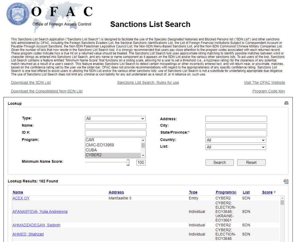 Lösegeldzahlungen an sanktionierte Cyber-Kriminelle sind nach U.S.-Recht verboten und können verfolgt werden, auch im Ausland. Als wir vor einem Jahr über dieses neue Verbot berichteten, gab es nur 10 Namen auf der Liste der sanktionierten Cyber-Kriminellen. Innerhalb eines Jahres ist die Liste („CYBER2“ Program) auf stolze 162 angewachsen und wird jeden Monat länger. Sie schließt zudem jetzt auch Wallet-Adressen der Erpresser mit ein.