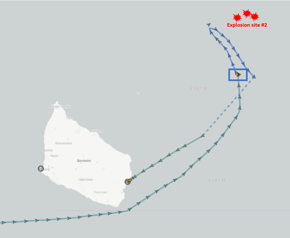 The following day, 23 September, the „Visby“ rounded the island of Bornholm, passing closely by the later explosion site #1 in the process.