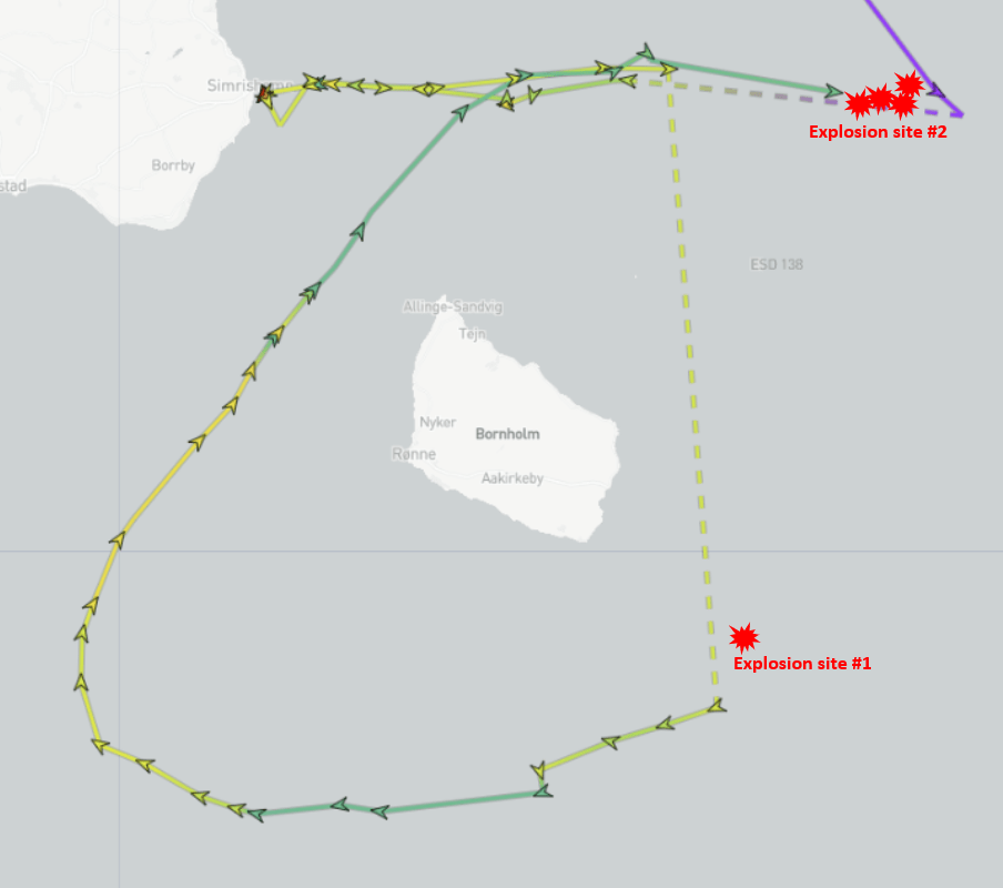 Had it received a radio call instructing it to search for something? Its destination apparently lay in the waters northeast off Bornholm, in a place not far from where four days later a massive detonation would rip holes into four separate Russian-German gas pipes.