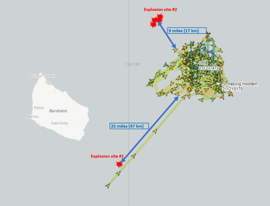 Ein Puzzleteil, das in diese Richtung weist, ist, dass zwei militärische Patrouillenboote der schwedischen und dänischen Marine sich wiederholt in den Gewässern östlich von Bornholm umgesehen zu haben scheinen. Dies geschah am 22. und 24. September, wenige Tage vor den Explosionen am 26. September.